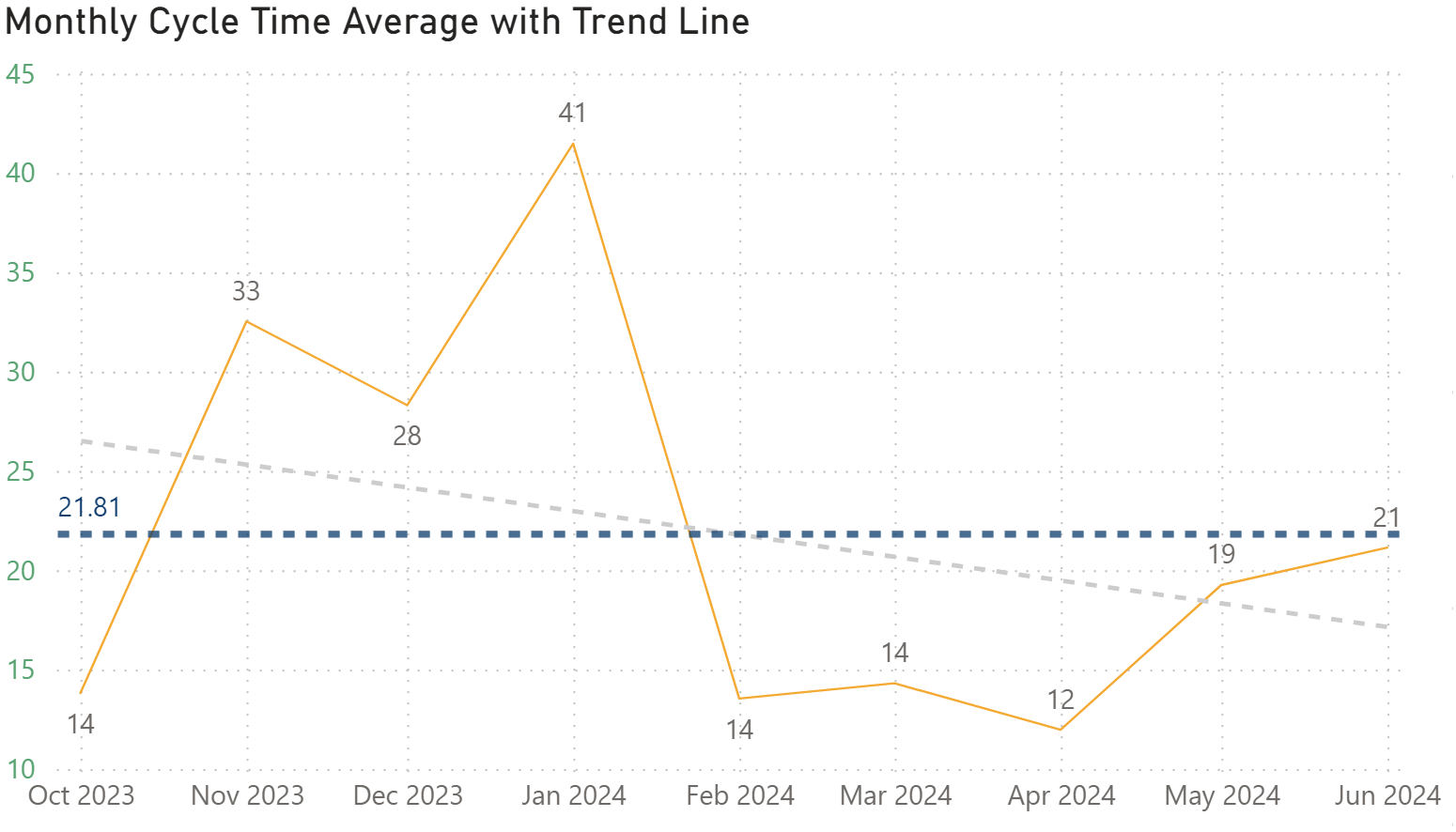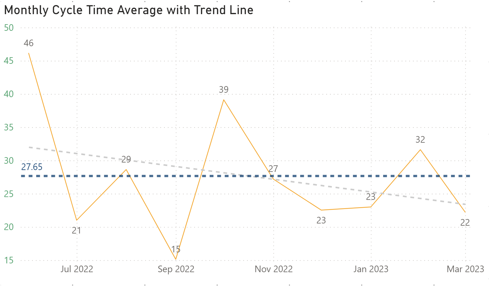 • Average System Lead Time (Cycle Time): 27.25 days - a 1.4% improvement