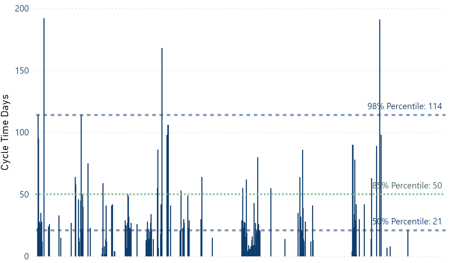 • 50th Percentile Lead Time: 13 days - 38% improvement from before the engagement