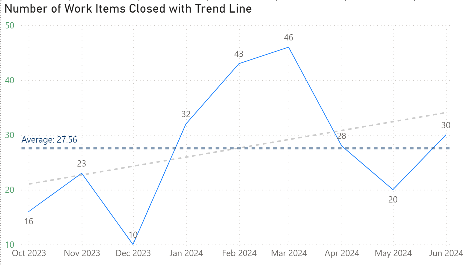• Throughput: 27.56 work items/month - a 42% improvement from before the engagement