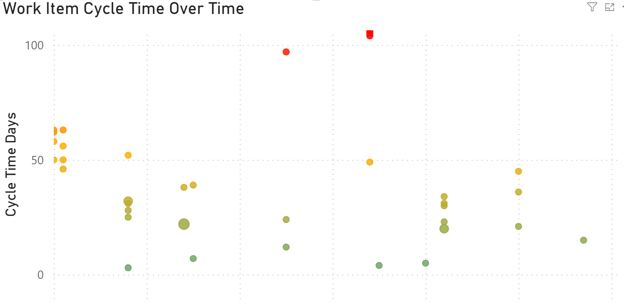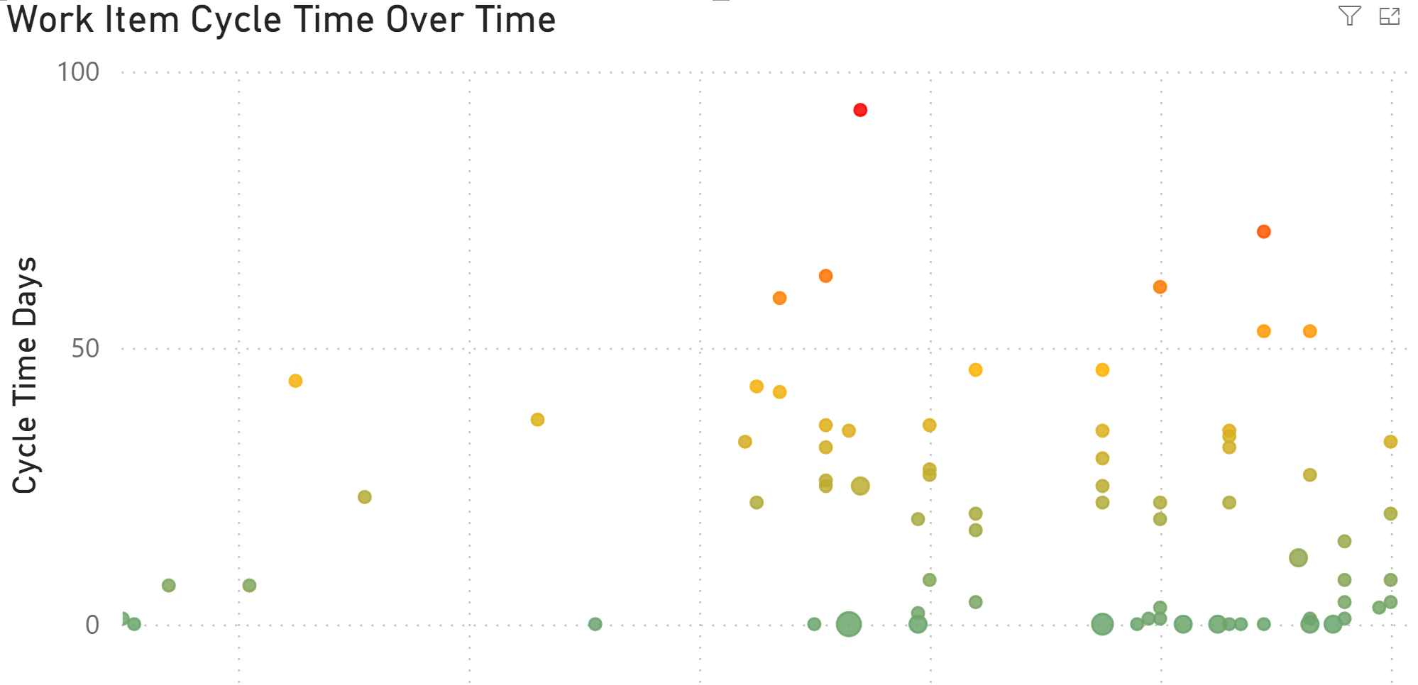 These metrics indicate a significant reduction in cycle times and an increase in throughput, reflecting enhanced efficiency and productivity within the team. The variability in cycle times also decreased, leading to more predictable and reliable delivery timelines.